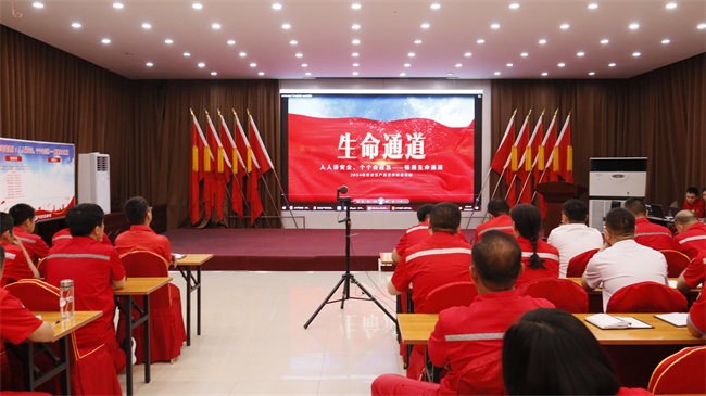 会议开始前由安全管理部部长曾高岭组织全体成员观看2024年“安全生产月”主题警示教育宣传片《生命通道》。