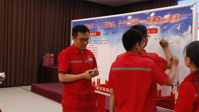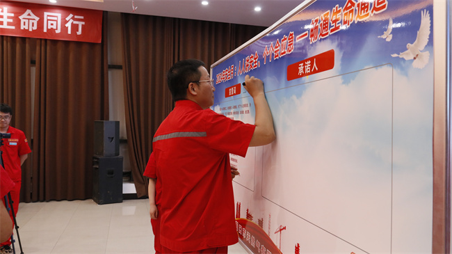 启动仪式上,安全管理部长曾高岭还带领全体人员进行了安全宣誓。赵广良带头,参会人员依次进行安全承诺签字。