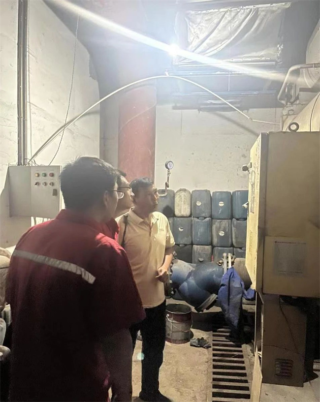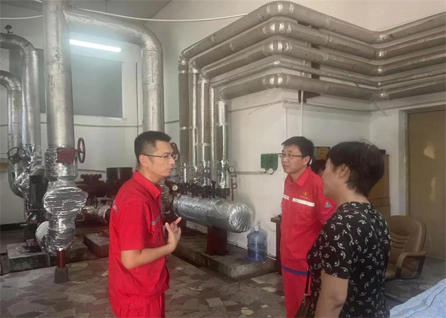 刘宗立和张红伟深入直燃机机房进行查看,与用能单位技术员面对面交流沟通,详细了解目前市场上直燃机运行模式、用能功耗及使用过程中利弊状况,并对用户如何利用综合能源提出了建议。