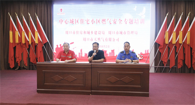 为进一步普及燃气安全使用知识,提高社区居民的安全用气意识。8月2日,周口市天然气有限公司联合周口市住房和城乡建设局、周口市城市管理局开展中心城区住宅小区燃气安全专题培训。培训对象包括中心城区各区物业管理行政主管部门分管负责人、各街道办事处分管安全及物业工作负责人、各物业服务项目负责人等120余人。市住建局物业科科长许鹏峰、市城管局副支队长董卫强、公司副总经理王继领出席培训会议。