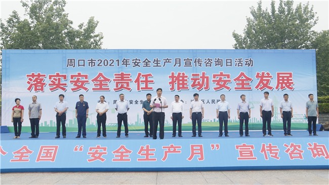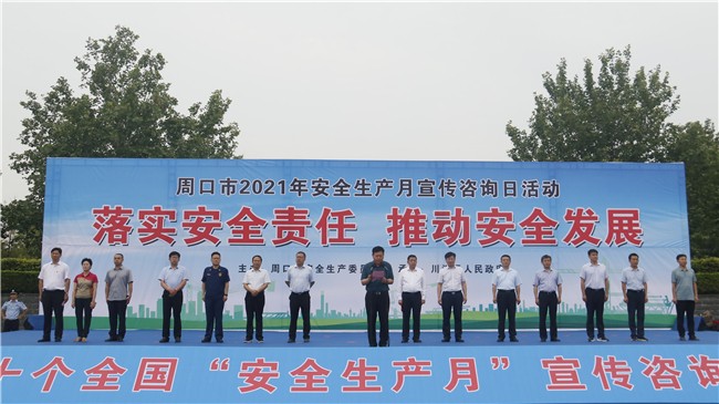 为切实提升全市人民安全用气意识,提升安全防护能力,普及安全基本知识,夯实安全基础,按照周口市政府安委会的总体部署,6月25日上午,周口市2021年安全生产月宣传咨询日活动在川汇区行政新区广场举行。市应急管理局、市安委会成员单位、驻周企业等36家单位及企业近2000余人出席活动,周口市应急管理局局长胡恩勇出席活动并致辞。周口市天然气有限公司董事长赵广良代表全市企业宣读“落实安全责任 推动安全发展”倡议书。周口市天然气有限公司组织了30人方队参加了活动。