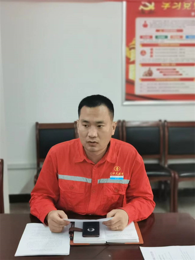 郸城县天然气有限公司党支部副书记、公司副经理郭高俊要求所有党员、管理干部要学习党员先烈冲锋在前、敢于担责担当的精神,担当实干、严作风、抓落实,对待问题要定措施、快落实,定措施要严,落实要细、要到位。