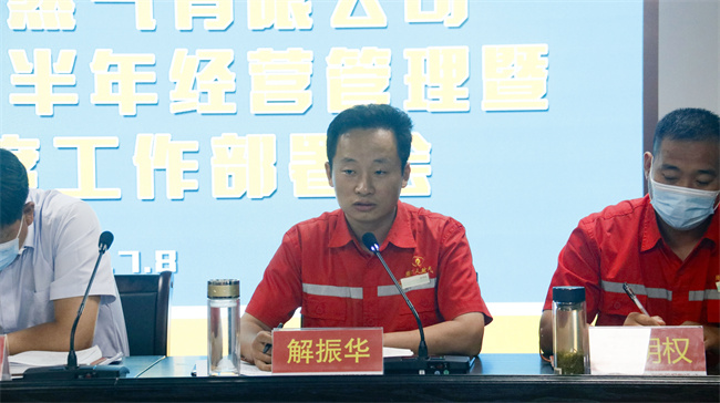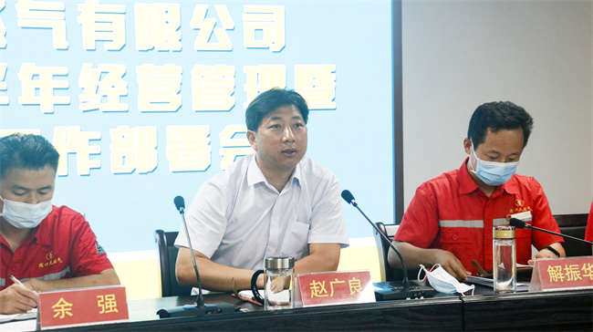 亿星集团常务副总裁,周口天然气公司董事长赵广良对上半年经营管理情况进行总结。