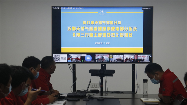 7月22日下午,周口市天然气有限公司运营管理中心在二楼会议室组织召开了《第三方施工管理办法》培训会。亿星集团常务副总裁、周口天然气公司董事长赵广良,周口天然气公司副总经理李明权,城区运营部巡线班组在现场参加会议,各县市公司以视频形式参会。会议由李明权主持。