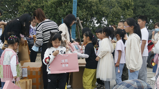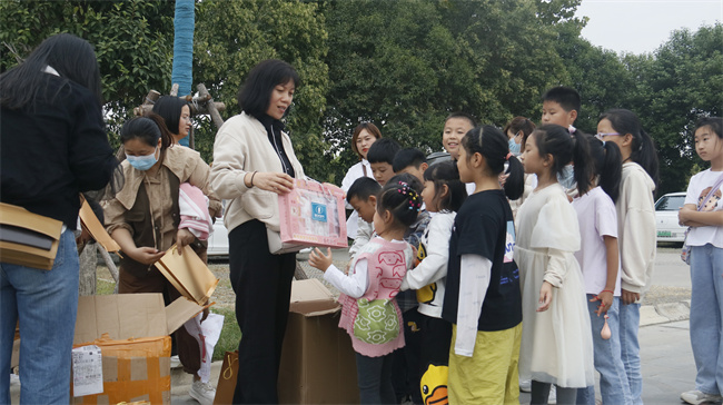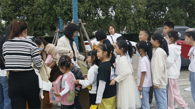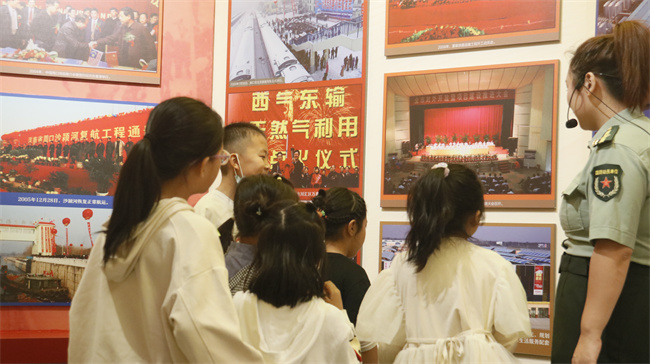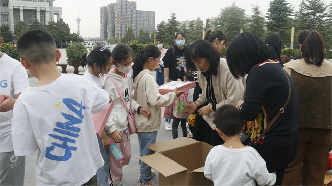 参观结束后,受邀员工子女集体在博物馆门前合影留念,亿星集团工会代表、周口天然气公司客户服务中心副经理周玲玲代表公司向员工子女发放纪念礼品。