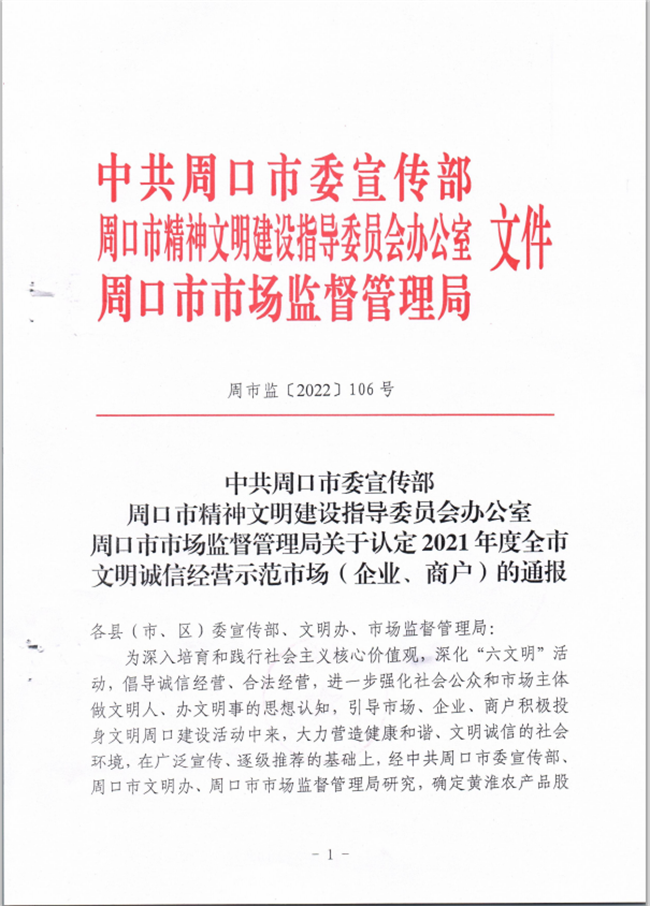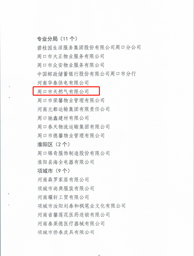 为深入培育和践行社会主义核心价值观,深化“六文明”活动,加强文明诚信建设,市市场监管局联合市委宣传部、市文明办开展2021年度周口市“文明诚信经营”评选活动,周口市天然气有限公司荣获“2021年度周口市文明诚信经营示范企业”。