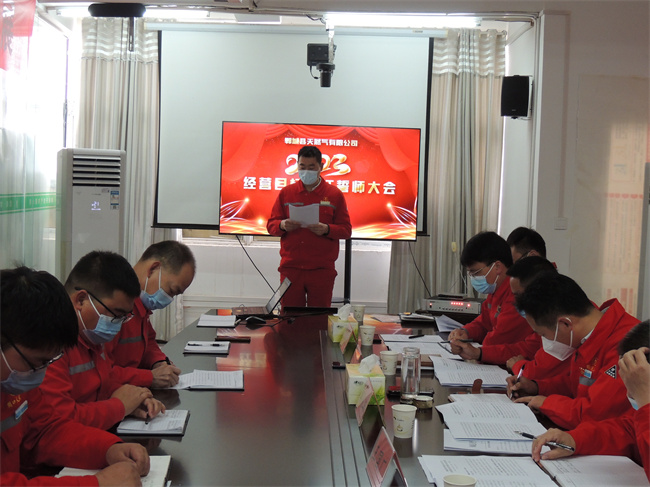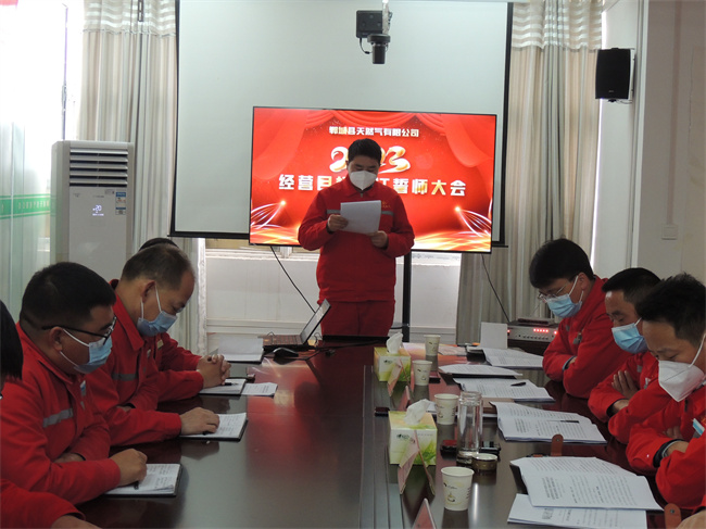 郸城天然气公司经理朱安成宣读了《关于2023年人事聘任及分工的通知》,并向大会作了2023年发展规划执行报告。