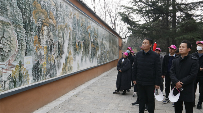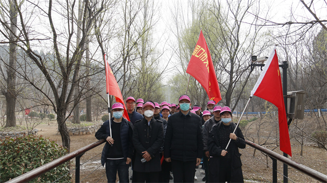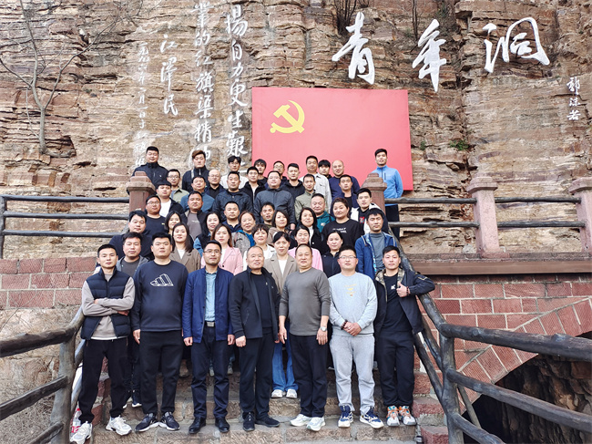员工们来到青年洞景区,重走初心之路。这里处于豫、冀、晋三省交界处,素有鸡鸣一声闻三省之说的牛岭山村下方,修筑在太行山腰的峭壁之上。它是红旗渠水工、建筑和自然景观结合最为精妙的地段,也是红旗渠建设最艰巨的地段。