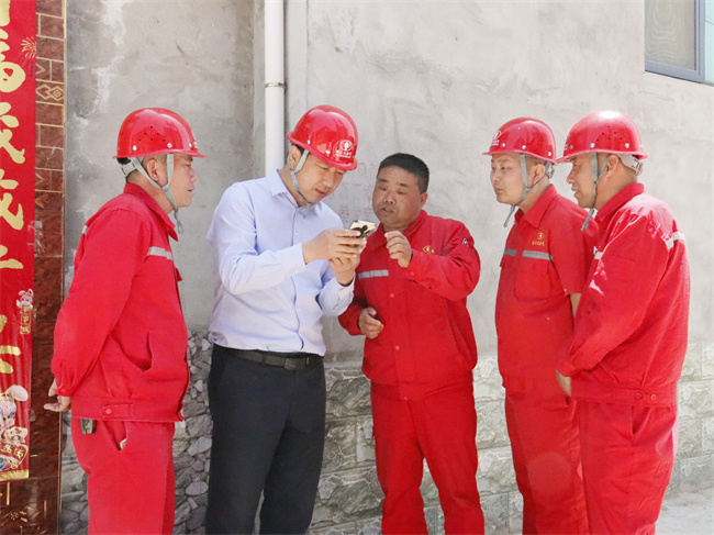赵广良一行在郸城县双楼乡、秋渠乡、钱店镇对市场发展人员和施工队施工现场进行调研。每到一处,赵广良都仔细询问市场发展情况、工程施工工艺,现场查看报装记录,观看系统操作演示,与现场人员交流座谈。他指出,郸城公司发展取得的成就离不开全体干部员工长年累月的敬业奉献、积极作为,大家很不容易,也很了不起,向大家表示衷心感谢。同时,部分干部员工放弃“五一”假期休息,仍然坚守工作岗位,舍小家顾大家,是最美丽的劳动者,是最可敬的人。