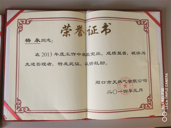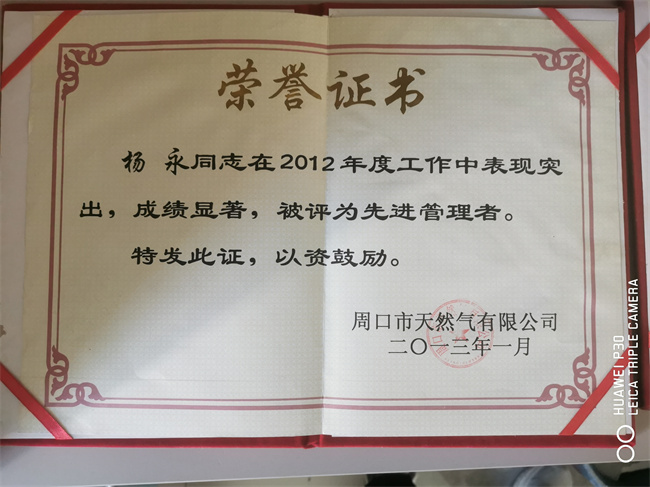 在2007年至2011年期间,杨永凭借自身的努力和才能,从加气母站加气工逐步晋升至周商路站班组长。在2012年至2018年,他先后担任西华加气站站长和加气母站站长,在2019年,他被提拔担任设备管理部负责人。