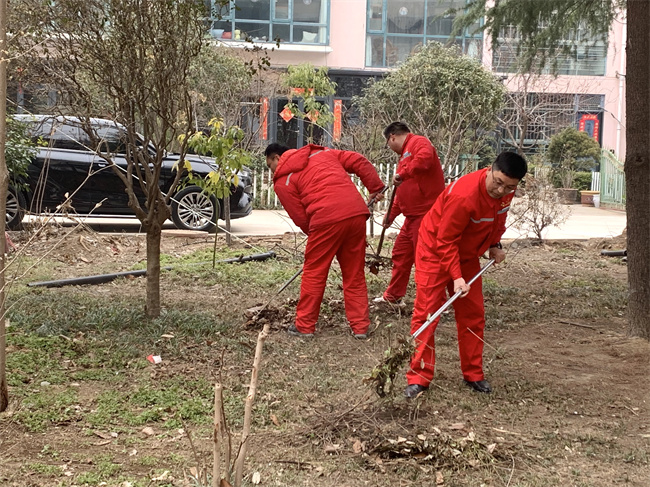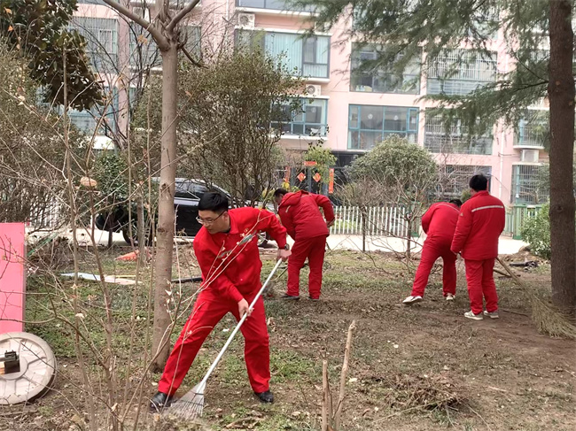 在活动现场,机关党支部副书记王继锋与党员志愿者们一起开展卫生清洁活动,对小区内树木落叶、卫生死角进行了全面的清理。
