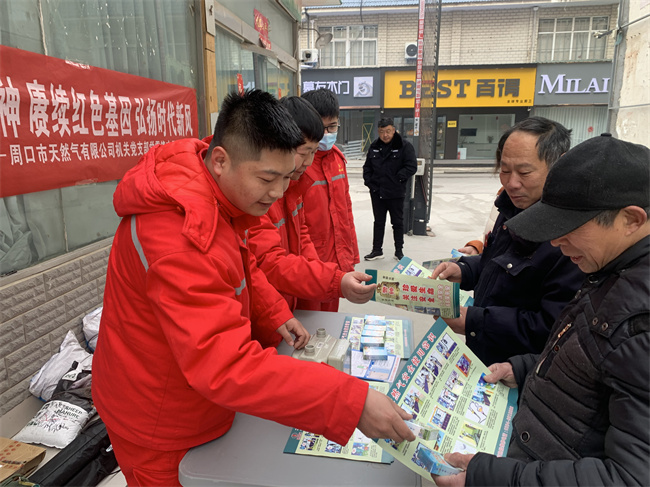 清扫结束后,党员志愿者们在小区院内设置安全宣传咨询台,发放安全宣传彩页进行安全宣传,向过往居民讲解安全用气注意事项、燃气泄漏应急处置措施和公司应急抢险服务电话等安全应急知识和方法。